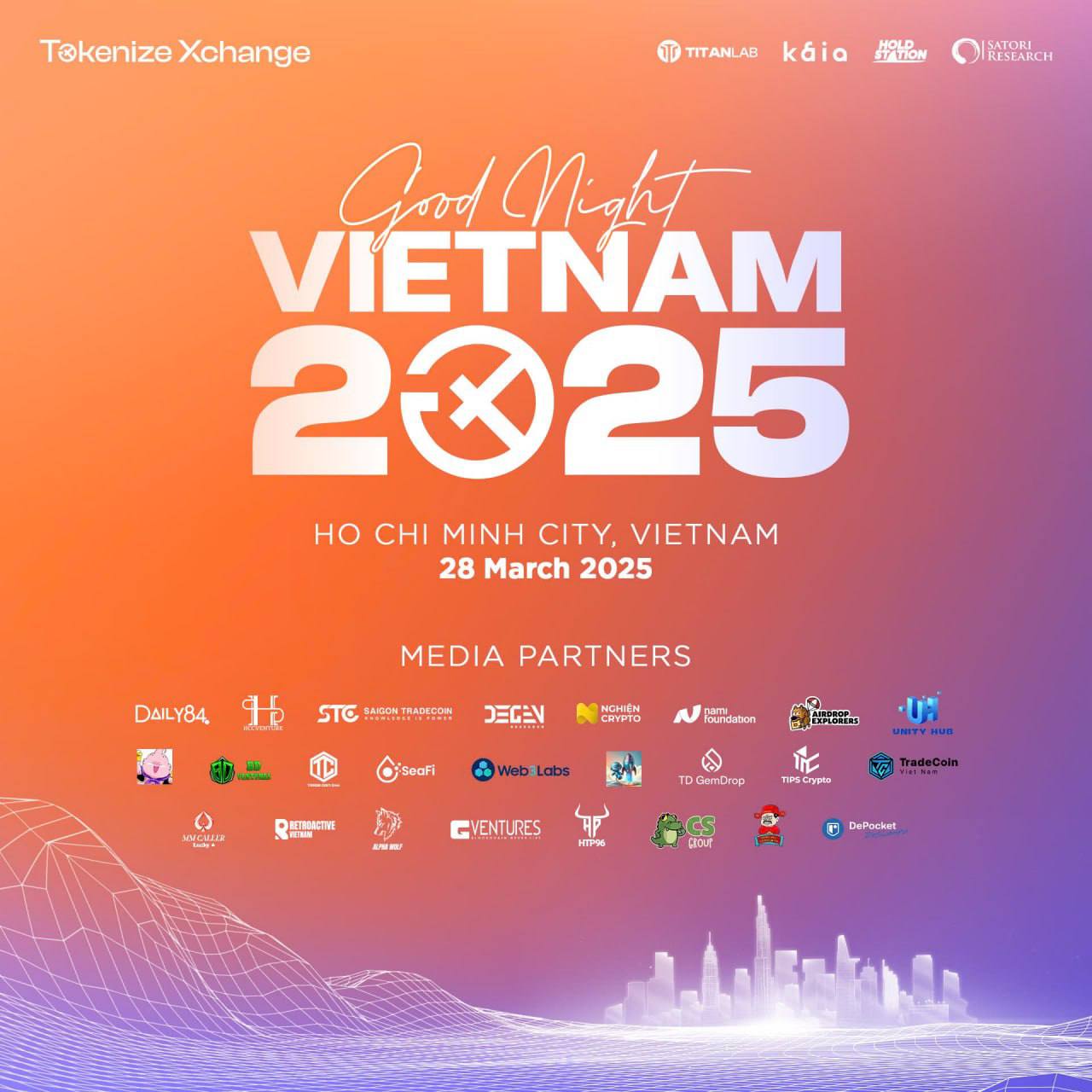 ###🚀 **Tham gia sự kiện Goodnight Vietnam – đc tổ chức bởi Tokenize Exchange** Good Night Vietnam 2025 là sự kiện quan trọng dành cho những ai quan tâm đến Web3 và tiền điện tử tại Việt Nam, mang đến cơ hội kết nối với các chuyên gia, nhà đầu tư và nhà đổi mới trong khu vực Đông Nam Á, đồng thời khám phá xu hướng công nghệ tài chính tương lai. 🗓 Thứ Sáu, 28/03/2025, từ 12:00 đến 18:00 (giờ VN) 📍 HCM 📌 Host: Titan Labs, Tokenize Exchange, Kaia Chain, HoldStation 🟡Hoạt động nổi bật như diễn thuyết chính, trò chuyện bên lề, khu vực trải nghiệm và gian hàng, cùng phiên thuyết trình dự án nơi các dự án cạnh tranh để giành khoản tài trợ 500.000 USD từ Titan Grant, 🟡Bên cạnh các bàn thảo luận về phát triển hạ tầng Web3 ở Đông Nam Á (bao gồm Layer 1/Layer 2, AI, ví, DeFi...) và quan điểm của các quỹ đầu tư mạo hiểm (VC) về thị trường Việt Nam cũng như xu hướng tương lai, kết thúc bằng tiệc networking VIP dành riêng cho VIP, nhà tài trợ, diễn giả và đối tác chính. 👉Đăng kí: https://lu.ma/ahpxcruh?tk=1UT328