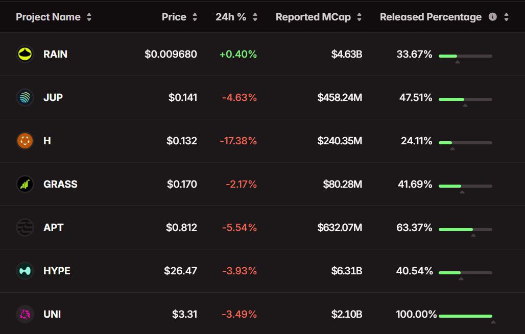 ###Последние обновления по выкупу токенов и токеномике Предстоящие разблокировки токенов • GRASS: разблокировка 10,5 млн. долларов (10% от общего объема в обращении) 28 февраля • H: разблокировка 13,9 млн. долларов (4,37%) 25 февраля • JUP: разблокировка 35,8 млн. долларов (7,62%) 28 февраля • RAIN: разблокировка около 91 млн. долларов наряду с повышенными ежедневными эмиссиями на этой неделе • APT: Перестройка токеномики - Жесткий лимит в 2,1 млрд токенов - Сокращение вознаграждений за стейкинг вдвое - Разблокировка токенов инвесторами завершится в 2026 году - Сжигание 100% базовых комиссий за газ • UNI: Голосование по активации переключения комиссий Uniswap для дополнительных пулов завершается сегодня • JUP: Предложение о приостановке эмиссии всех токенов принято. TGE и запуски • DIME: Paradex планирует запустить свой собственный токен в ближайшие недели • CHIP: Публичное ICO USDai запущено • HYPE: Hyperliquid Foundation выделяет 1 млн HYPE на создание политического центра в Вашингтоне, округ Колумбия