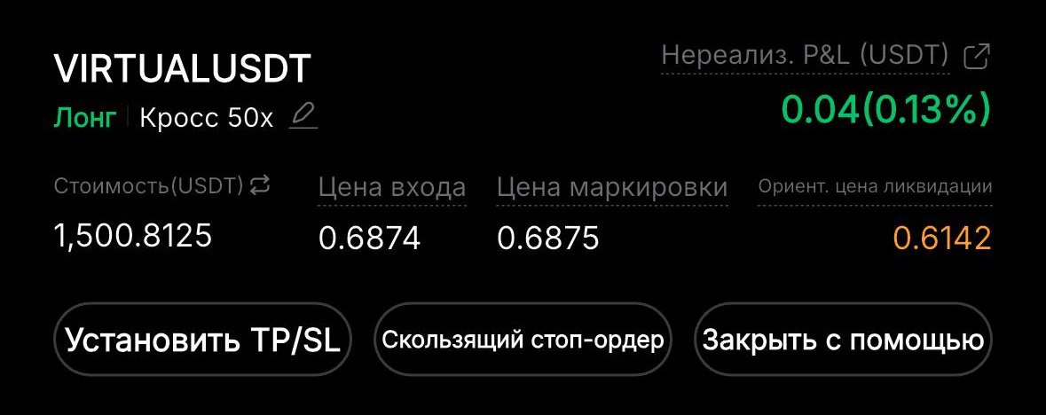 ###**VIRTUALUSDT - LONG**🕯 ✅Цель: 0.7130 ❌Стоп: 0.6778 **Торгую на **📈 [**Бонус 50$ для новых пользователей**](https://partner.bybit.com/b/71064)