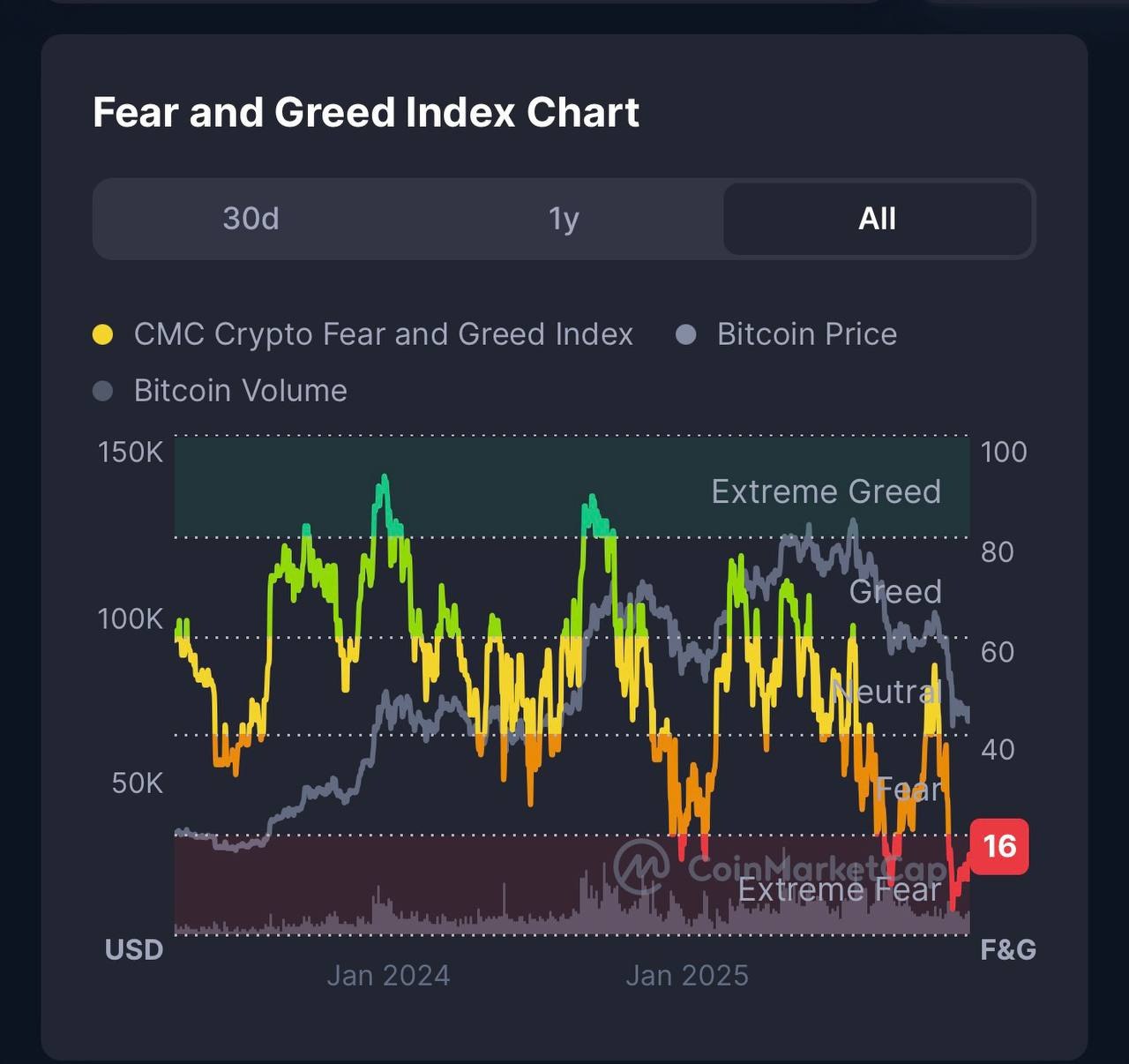 ###**Не смотря на рост графика - индикатор находится в зоне экстремального страха **🫣 Данный показатель нам четко дает понять, что ритеил не спешит откупать график и с осторожность относится к текущему повышению! **Трамп выступит с большим обращением сегодня** 🔥 Если Трамп пойдёт на сильное снижение ставок - рынок может получить сильный всплеск и приток ликвидности. Я конечно слабо верю в такой расклад... **В остальном по рынку никаких изменений от слова совсем. Ждём вечера.**