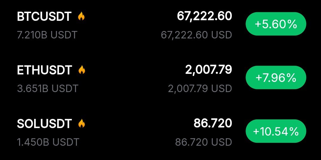 ###🚀 Крипторынок восстанавливается! Эфир, Солана и XRP показывают рост до 10% после потерь, вызванных конфликтами в субботу. 📈 Солана лидирует с увеличением на 10.8%, эфир снова поднялся выше $2000, а биткойн вернулся выше $66,800 перед открытием традиционных фьючерсов в воскресенье. [@PROBLOCKCHAIN SQUAD](https://t.me/Problockchain_Squad)