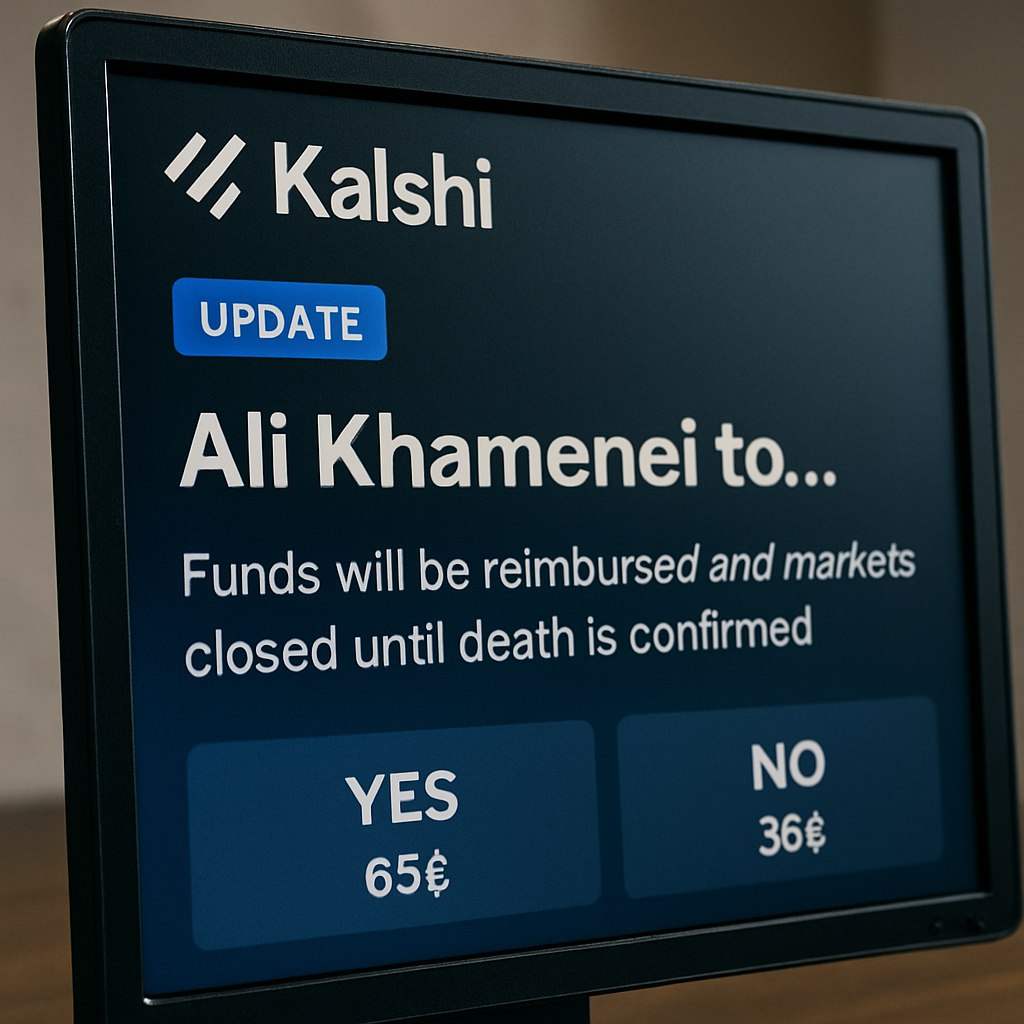 ###📈 Основатель Kalshi сообщил об обновлении на платформе прогнозов в связи с ситуацией вокруг иранского лидера Хаменеи. Платформа объявила, что возместит пользователям средства и закроет рынки по цене последней сделки до подтверждения смерти иранского лидера. [@PROBLOCKCHAIN SQUAD](https://t.me/Problockchain_Squad)